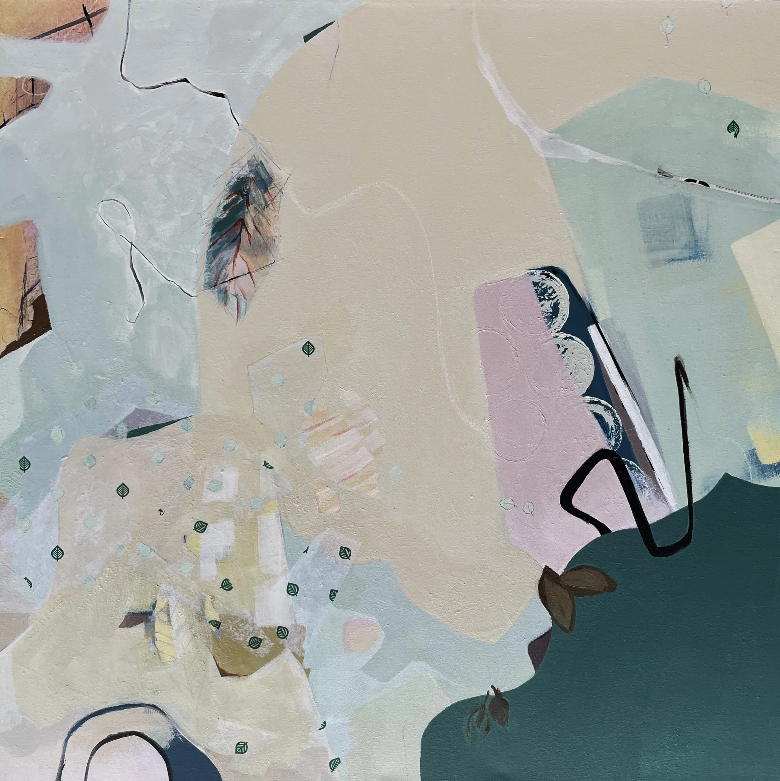 Series: Lighter Days (9), 2022, Acrylic, pencil, and collage on canvas- 30"x30"